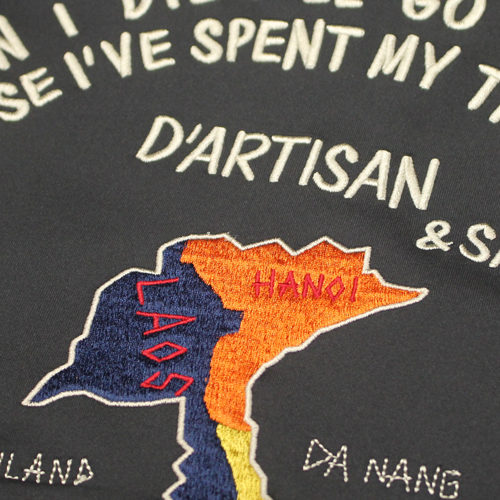 ステュディオダルチザンベトジャージが入荷しました! ステュディオ・ダ・ルチザン(ダルチザン) 2025.08.08 ステュディオダルチザンベトジャージが入荷しました!カラーはブラックです。前後細かい刺繍をした高級感ある仕上がりとなっています。1960年代、ベトナム戦争に赴いたアメリカ兵たちのリクエストから誕生したベトジャンをモチーフにジャージとなっています。左胸のデザインはよく見かけるデザインは「福」ですが、よく見ますとひらがなで「だるち」となっているところがユニークです。 サイズ:M、L、XL、XXL 価格:25080円(税込み)