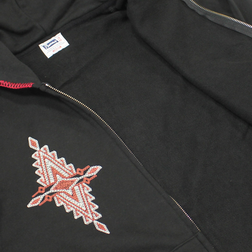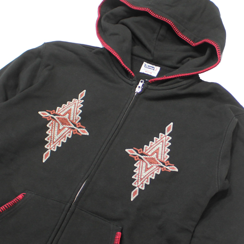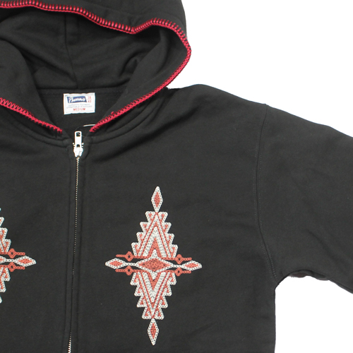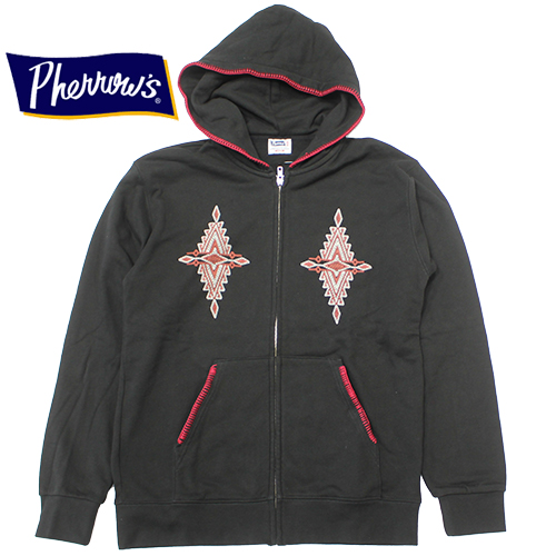 Pherrow’s(フェローズ)ZIPパーカーが入荷しました!カラーはブラックです。前と後ろはネイティブ柄のデザインがプリントとなっています。一見刺繍にも見えますが、細かいデザインとプリント技術でクオリティの高い仕上がりとなっています!フードやポケットの入り口はブランケット刺繍となっていて高級感があります。薄手の柔らかい生地となっています。