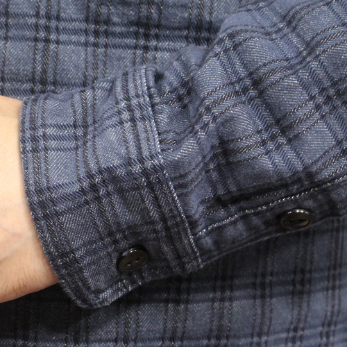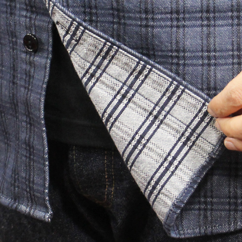 ステュディオダルチザン13ozジャガードチェックシャツ ステュディオ・ダ・ルチザン(ダルチザン) 2025.09.25 ステュディオダルチザン13ozジャガードチェックシャツのご紹介です。カラーは、ネイビーです。13ozというシャツとしては異例のヘビーウェイト仕様を採用したジャカード織りのチェックシャツとなっています。岡山県井原市の老舗機屋(はたや)に依頼し、デニムのような力強い綾織をジャカード織機を用いて緻密に表現しています。デニム生地のような綾織りやヘリンボーン生地のような織で出来上がっています。ダルチザンのこだわりが見える商品となっています。 サイズ:38、44 価格:30580円(税込み)
