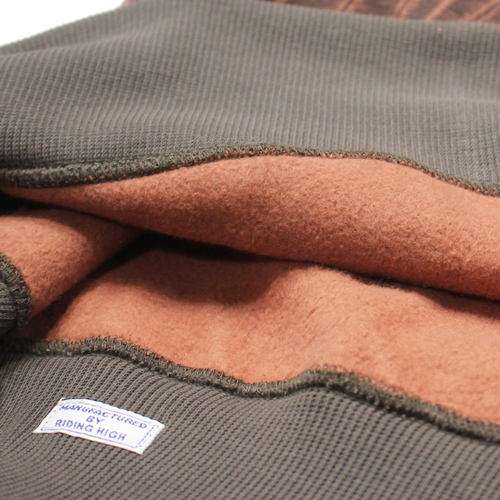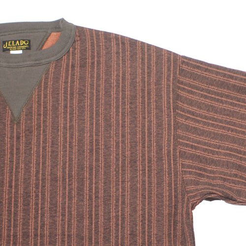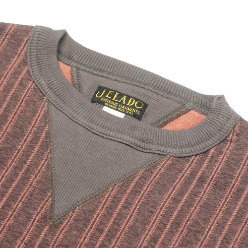 JELADO(ジェラード)Mountain Man Fleece Crew Neckが入荷しました!JELADOの秘蔵コレクションから厳選したヴィンテージアイテムを再現したモデルになります。 ライディングハイさんと共同で、こだわり抜いたスウェットシャツとなっています。1930〜40年代のアウトドア用ヴィンテージ生地を分析し、忠実に再現。 表糸は30番手のチャコール杢糸を使用し、中糸には生成り糸を採用。裏糸は異なる太さの2種類を組み合わせ、ストライプ柄のような凹凸感を演出しています。特殊なジャガード編み機(世界に2台)を使用し、裏側も起毛後にオーバーダイ加工を施しています。