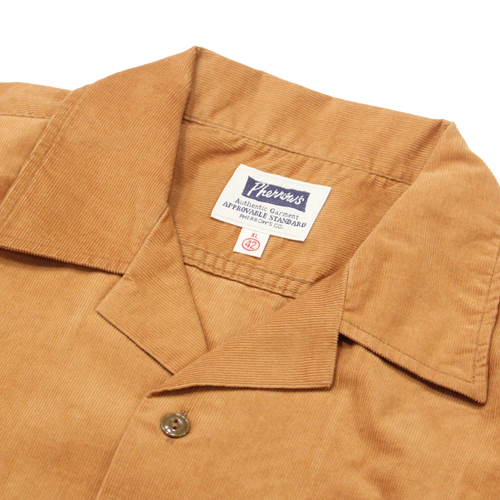 Pherrow’s(フェローズ)オープンカラーコーデュロイシャツが入荷しました! フェローズ 2025.09.27 Pherrow’s(フェローズ)オープンカラーコーデュロイシャツが入荷しました!カラーはオレンジです。ウネが細かい薄手のコーデュロイシャツになります。デザインはオープンカラーで裾の部分が真っ直ぐになっているところが特徴です。硫化染色による深みのあるオレンジ色となっていて、着用を重ねるほど経年変化が楽しめます。随所に施された巻き縫いが生み出すパッカリングも相まって、立体感ある独特な表情になります。 サイズ:XL 価格:18700円(税込み)