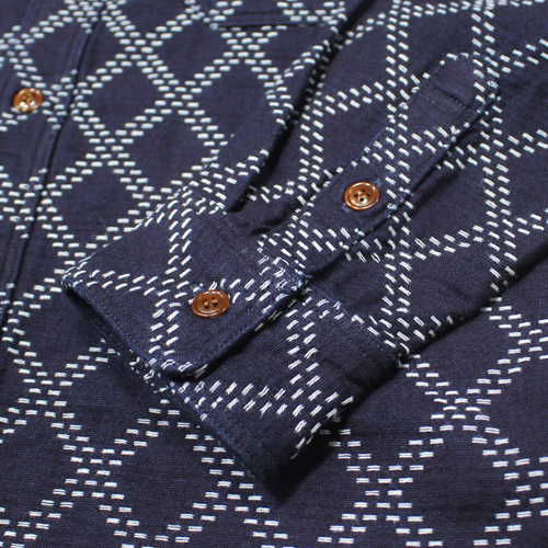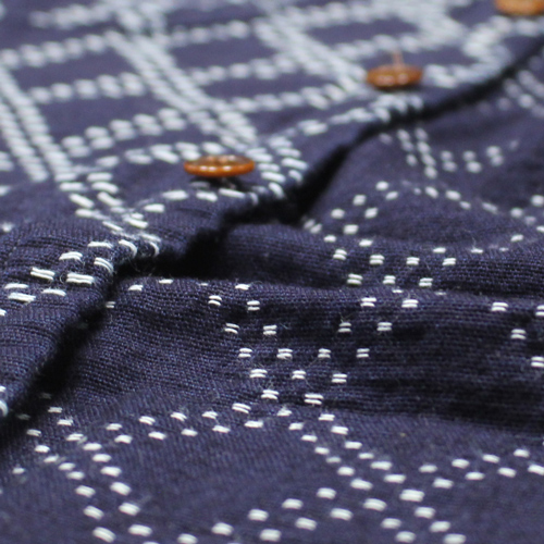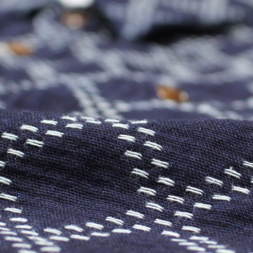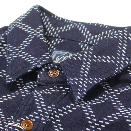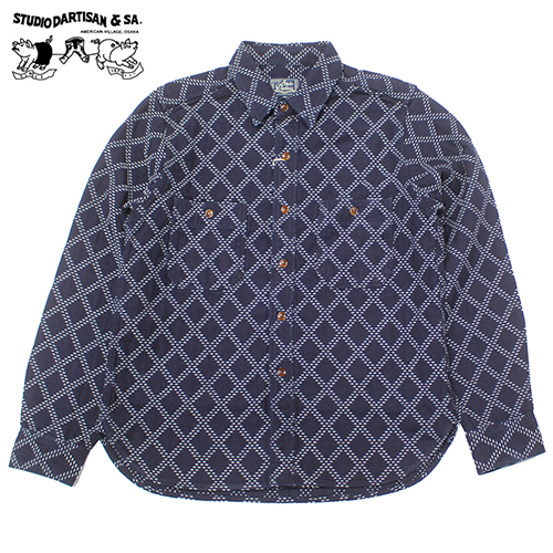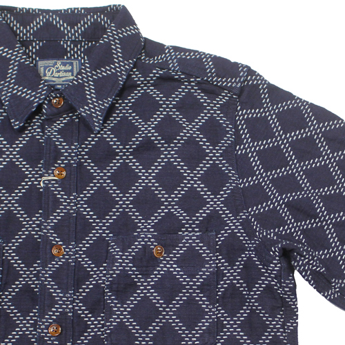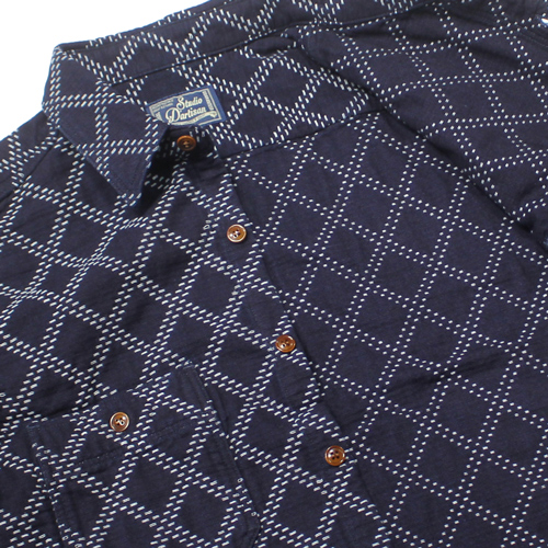 ステュディオダルチザンインディゴ刺し子シャツが入荷しました!太番手の糸で織り上げた刺し子部分は、洗いをかけることで縮率の違いによる独特の膨らみが生じるよう設計されています。白糸のひし形模様はまるで手縫いのような温かみがある仕上がりとなっています。厚みはありますが柔らかい生地ですので初めから着心地よく着て頂けると思います。インディゴならではの美しい経年変化もお楽しみいただけます。ボタンにはナットボタンを採用し、上品な風合いに仕上げております。