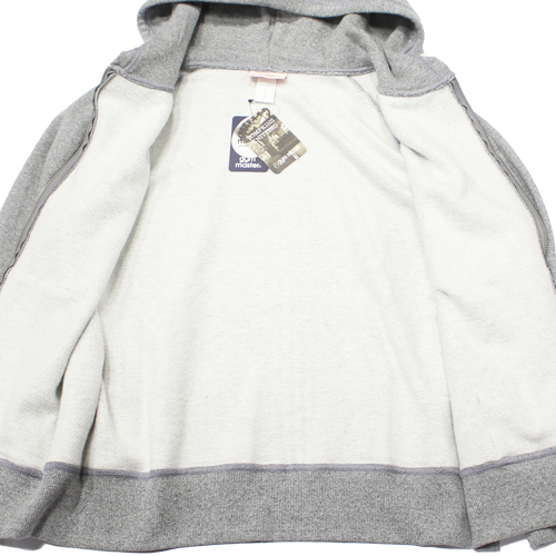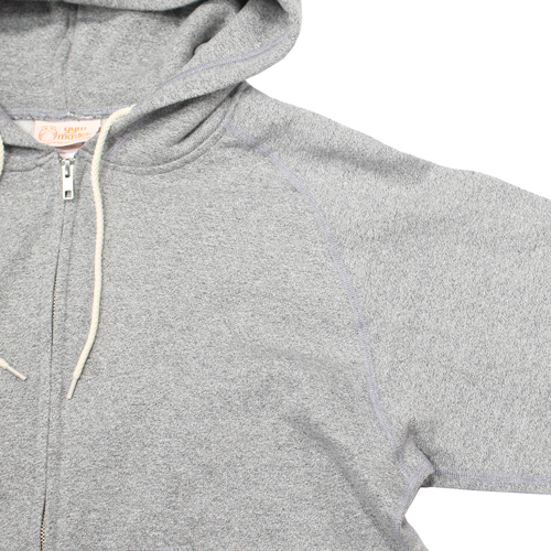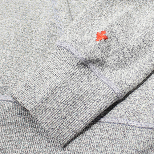 ジムマスタートンプキンスウェットジップパーカーが入荷しました!カラーは、杢グレーです。現代の一般的な高速編み機に比べ、編み上げる時間は約10倍。時間をかけゆっくりとした手法で編まれたのが「トンプキンスウェット」になります。素材には綿とポリエステルを使用、それぞれの良さを活かし。時間をかけて編むことで空気を含み、柔らかい触り心地となっています。綿の自然な柔らかさと通気性に加え、ポリエステルの軽さと耐久性が合わさることで軽やかで動きやすいパーカーに仕上がっています。左袖付近には、カエデのマークが刺繍になっています。