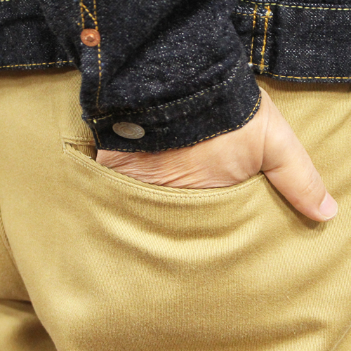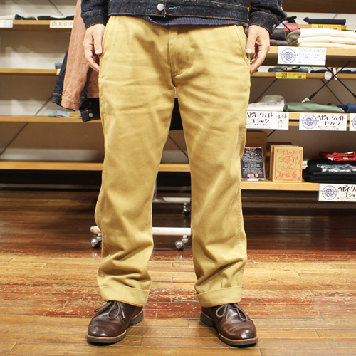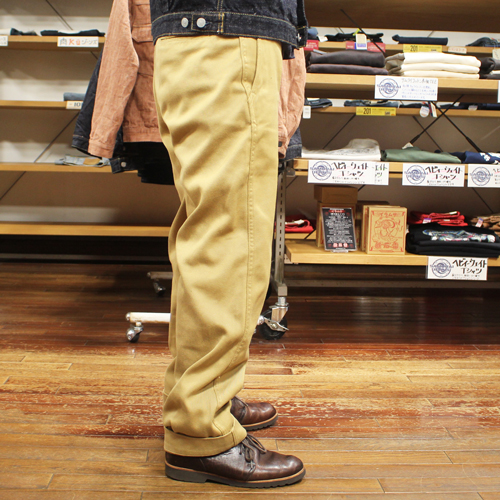 ステュディオダルチザン41カーキチノトラウザーズのご紹介です!カラーはベージュです。アメリカ軍が軍服として採用した41-KHAKIと言われています。アメリカ軍のチノパンの起源とも言えるこのアイテムは、1941年から数えるとおよそ80年前のディテールながら、いまだにその仕様は変わることなく受け継がれています。採用した肉厚なウエポン素材は、適度なハリがあり、美しいシルエットを生み出します。フロント開きはファスナー仕様に変更し、機能性と使い勝手を向上させています。シルエットはヴィンテージの雰囲気を残しつつも、全体的にスッキリとした現代的なアレンジを加えたレギュラーストレートとなっています。
