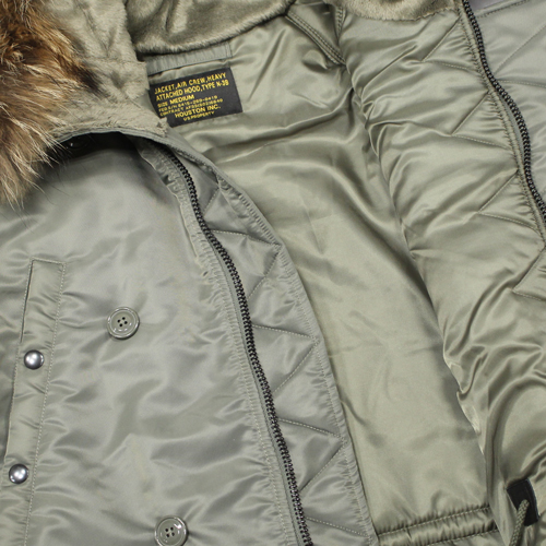 フード部分には上質なリアルファーを採用し、見た目にも高級感のある仕上がりに。ミリタリーウェアならではの無骨さの中に、HOUSTONらしい上品さと機能性が感じられます。しっかりとした中綿入りで真冬の寒さにも対応可能。防風性にも優れ、寒冷地での着用にも安心です。