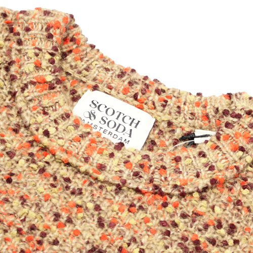 SCOTCH&SODA(スコッチアンドソーダ)セーターが入荷しました!ざっくりとした風合いが魅力の厚手スラブニットで、マルチカラーの糸を織り込んだ表情豊かな編地が存在感を放ちます。シンプルなボトムスに合わせるだけでスタイルが完成する、主役級の一枚です。