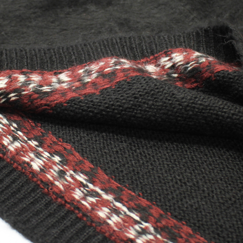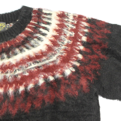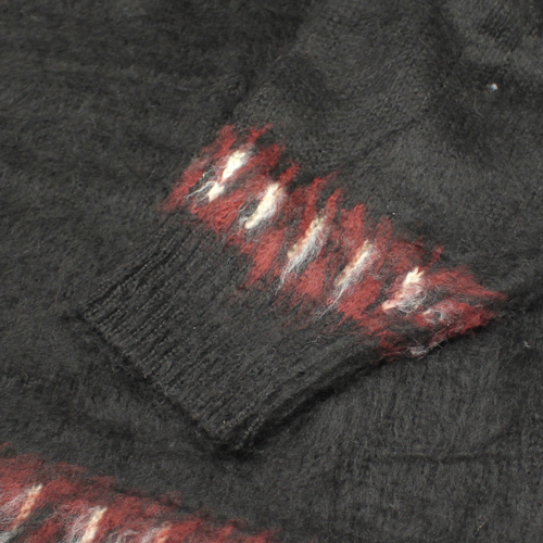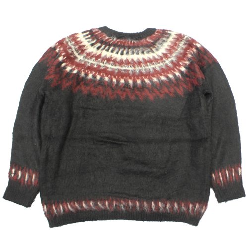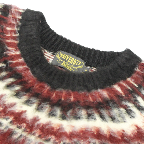 UNIVERD72モヘアタッチ起毛セーターが入荷しました!カラーはブラックです。ダブルジャガードで丁寧に編み立てられた、秋冬らしい温かみのあるノルディック柄が特徴。モヘアタッチのふんわりとした起毛感が心地よく、見た目にも着心地にもシーズンムードが漂います。