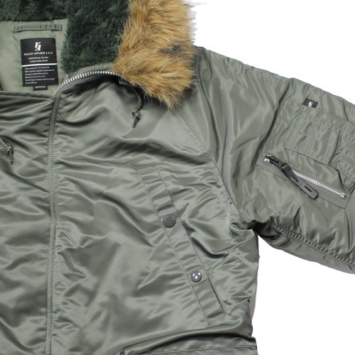 素材には、高密度で強度の高い FLIGHT NYLON(フライトナイロン)を採用。過酷な環境下でもしっかりと体を守るタフさを備えており、実用性とファッション性を兼ね備えた一着です。フードのファーは取り外しが可能ですので、幅広いシーンで活躍すると思います。