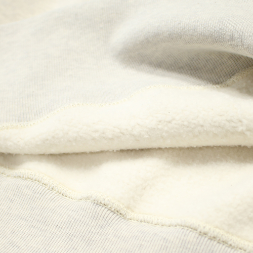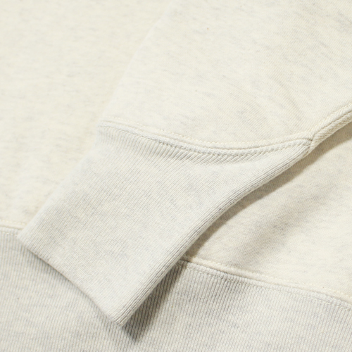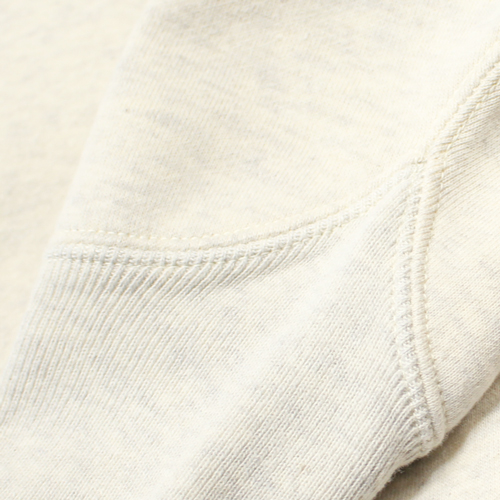 リブ部分も同様に丸編みすることで、ヴィンテージスウェットに見られる継ぎ目のない丸編みリブを再現。すっきりとしたシャープな印象に仕上がっています。