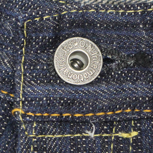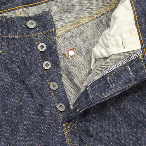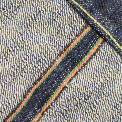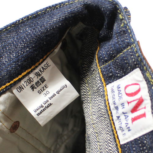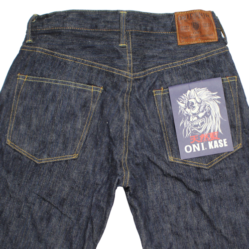 鬼デニム鬼KASEジーンズが入荷しました!シルエットはワイドストレートです。ロープ染色では表現できない濃淡のある染めに成功した天然藍によるロープ染色のデニムになります。濃淡のある染めは、正藍枷(かせ)染めでしか得られない枷ムラの表情をロープ染色で表現したデニムと言うところが最大の特徴です。 近くで見ますと、濃淡のある糸ですので、ストライプ調にムラが見えます。デニムの凹凸もいつもの鬼デニムより更にザラ付きがあります。更にセルビッチは歌舞伎耳(16オンス)となっているところも見逃せません!