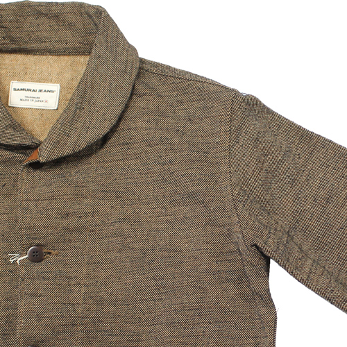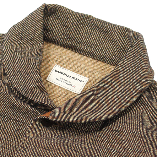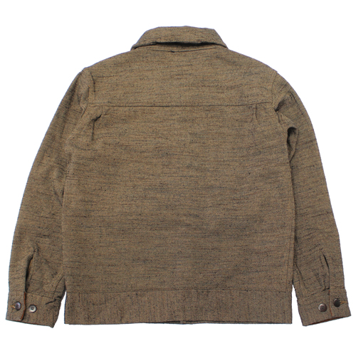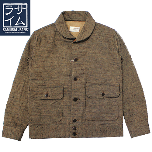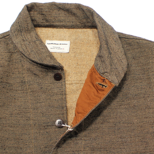 サムライジーンズの無地フランネルジャケットが入荷しました!カラーはブラックですが、ベージュ系×ブラックで織られているため、ブラウン寄りの落ち着いた色味に見えるのが特徴です。フライトジャケット「A-1」スタイルをベースにしたデザインで、武骨さと上品さを兼ね備えた一着です。