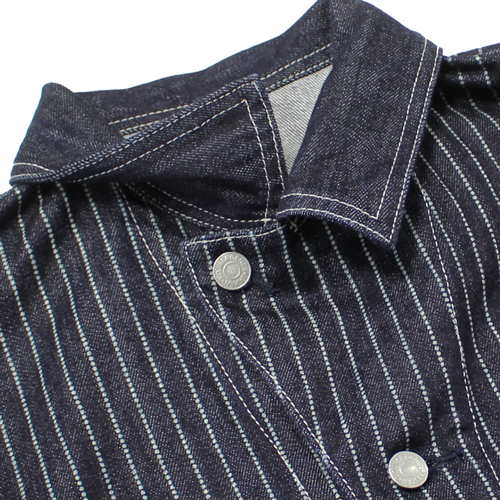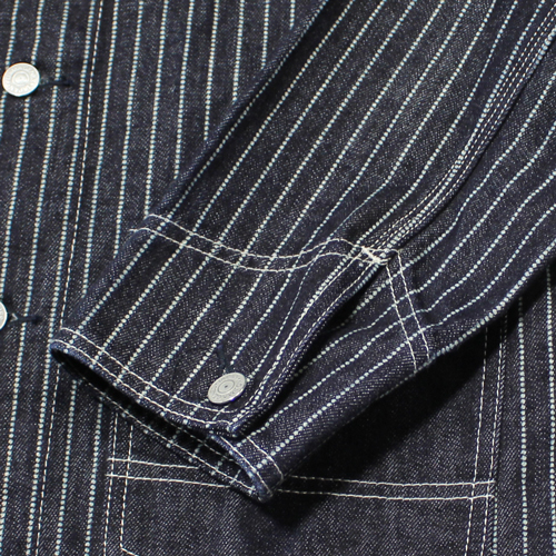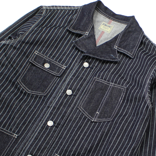児島ジーンズ13oz ウォバッシュカバーオールが入荷しました!ヴィンテージワークウェアを象徴する「ウォバッシュストライプ」を、13オンスのしっかりとしたデニムで再現した、本格派のカバーオールです。インディゴ染めによる深い濃紺の生地に、白い細かなドットストライプが規則的に並ぶクラシックなウォバッシュ柄は、存在感が抜群で、羽織るだけでコーディネートの主役になる一着に仕上がっています。