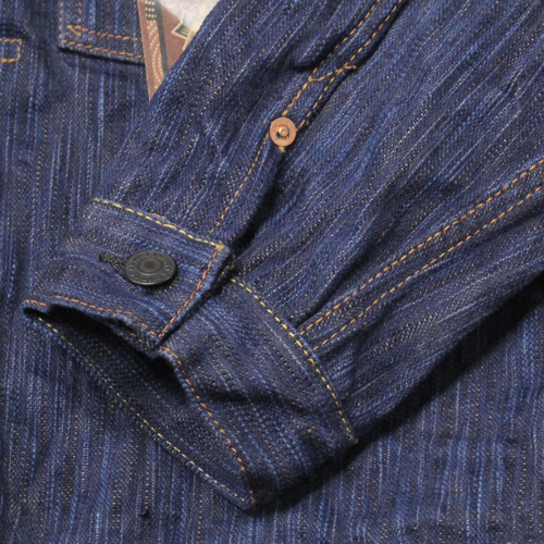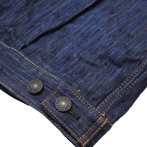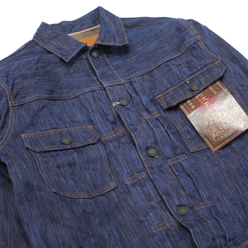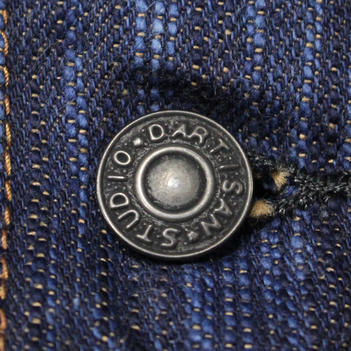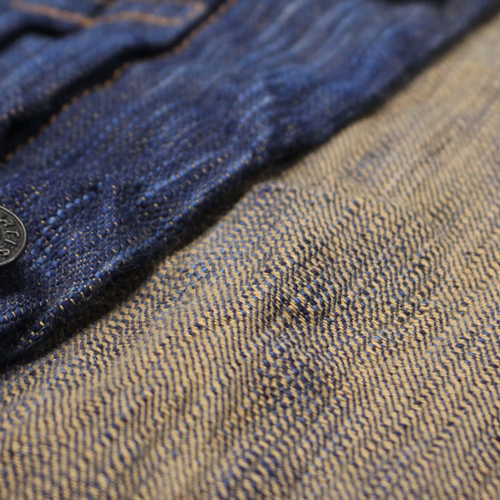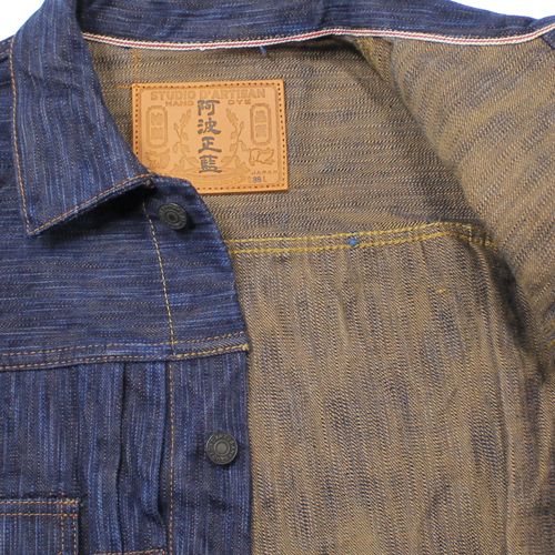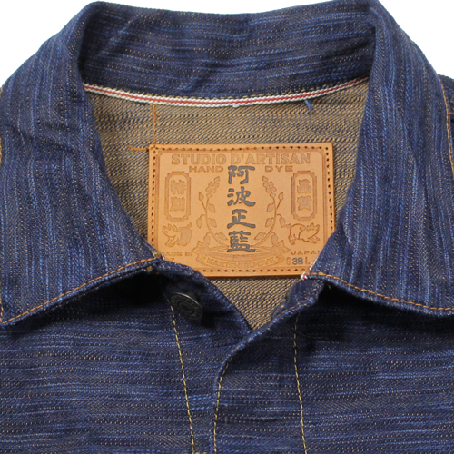 ステュディオダルチザン阿波正藍柿渋染めデニムジャケットが入荷しました!15オンスデニムになります。経糸に日本が世界に誇る伝統技法「阿波正藍染法」で染め上げた糸を使用しています。濃い色を一度で染めることはできないため、「染める」「絞る」「乾かす」という工程を何度も繰り返します。この丁寧な作業を重ねることで、奥行きのある深い色合いが徐々に生み出されます。横糸には、手染めによる「柿渋染め」の糸を使用しています。手染めの糸は機械染めのものよりも太く、独特の凹凸が生まれるため、ムラ感のある生地に仕上っています。このデニムならではの圧倒的な色落ちと風合いを楽しんで頂ければと思います。