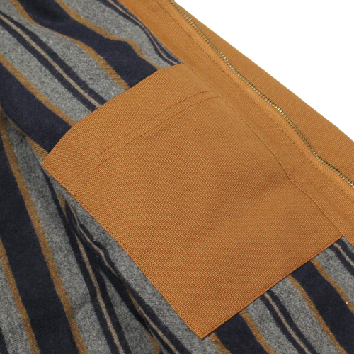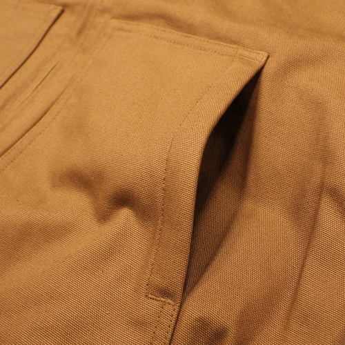 ダック(キャンバス)生地というと硬いイメージがありますが、こちらは程よく柔らかく、着始めから身体に馴染みやすいのが特徴です。さらに、内側にはオリジナルで作成されたウール混ブランケットをライニングに採用しており、見た目以上にしっかりとした保温性を備えています。