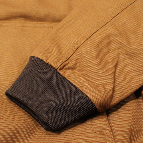 ダークブラウンのリブが全体の印象を引き締め、ワークテイストの中にも落ち着いた雰囲気をプラス。ジーンズやチノパンとの相性も良く、カジュアルからアメカジスタイルまで幅広く活躍する一着です。