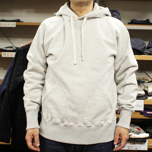 ステュディオダルチザン吊り編みパーカーのご紹介です。カラーはオートミール。ヴィンテージスウェットを生み出していた「吊り編み機」を、現在でも世界で唯一稼働させている和歌山県の工場と取り組むことで誕生した、特別なスウェットプルオーバーパーカーです。