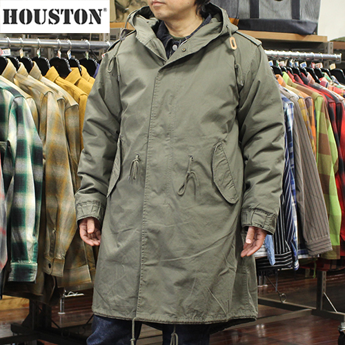 HOUSTON(ヒューストン)M-51のご紹介です。カラーはオリーブです。バックテール(フィッシュテール)が特徴的な、ミリタリージャケットの名作として知られるM-51。通称「青島コート」とも呼ばれ、長年にわたり愛され続けているロングセラーモデルです。フィッシュテールのデザインから、モッズパーカーとしても親しまれています。