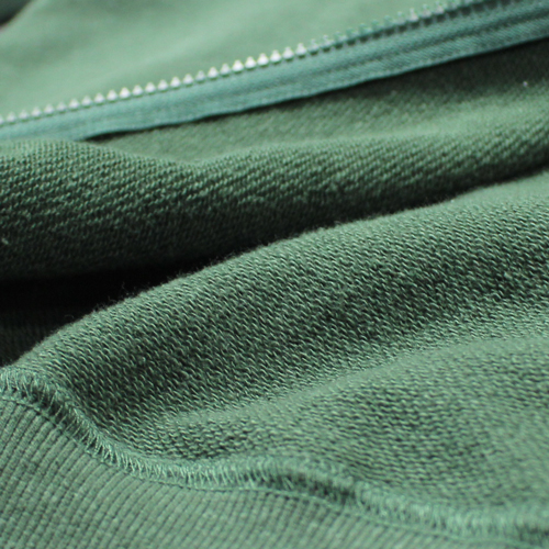 裏側は薄手のパイル生地仕様で、軽やかな着心地が特徴。重たくなりすぎず、季節の変わり目やレイヤードスタイルにも取り入れやすい一着です。ヘンプ混ならではの通気性とナチュラルな風合いも魅力となっています。
