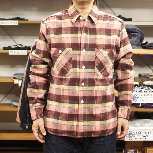 ステュディオダルチザンヘヴィウエイトフランネルシャツ ステュディオ・ダ・ルチザン(ダルチザン) 2026.01.24 ステュディオダルチザンヘヴィウエイトフランネルシャツのご紹介です!カラーはレッドです。濃いめのエンジ系×サーモンピンク系×ベージュ系のチェック柄になります。8番手の太糸を高密度に打ち込んだ重厚感のある風合いに仕上がっています。表面を毛羽立たせるシャギー起毛を施していますので、ふわふわとした柔らかい肌触りが特徴の生地となっています。全体的に柔らかい表情のカラーですので、特に濃いめのデニムジャケットとバランスが取れて見えると思います。 サイズ:38、42 価格:29480円(税込み)
