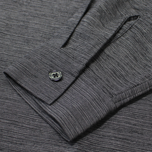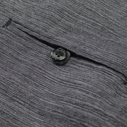 素材感を活かしつつ、シャークカラーのディテールを取り入れることで、大人らしい上品さをプラス。フロントには50年代スタイルを感じさせる両玉縁ポケットを配置し、クラシカルな雰囲気と実用性を兼ね備えています。