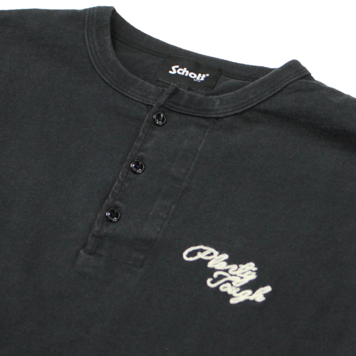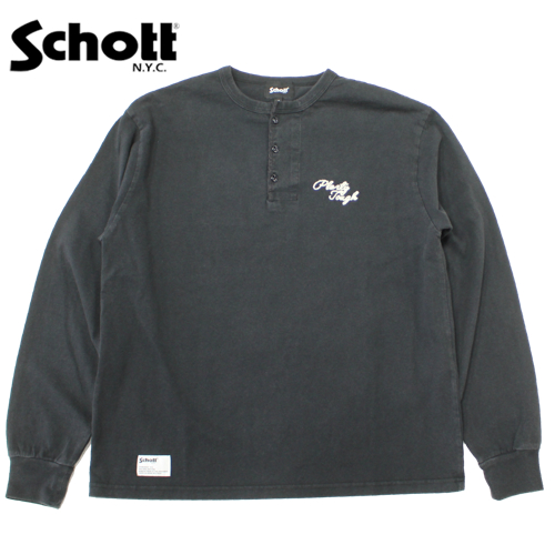 Schott(ショット)ヘビーウェイトヘンリーネック長袖Tシャツが入荷しました!カラーはブラックです。左胸にはワンポイント刺繍を施した、シンプルながら存在感のある一枚です。