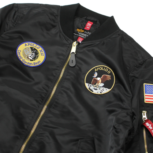 ALPHA(アルファ)L-2B アポロ GENIIミリタリージャケットが入荷しました!カラーはブラックです。中綿の入っていない軽量タイプのL-2Bで、季節の変わり目にも取り入れやすいライトアウターとなっています。デザインはNASAのアポロ計画をモチーフにしており、宇宙を彷彿とさせる近未来的な雰囲気が魅力。フロントや袖にはNASAロゴや星条旗のパッチが配置され、ミリタリーとスペーステイストを融合させた存在感のある仕上がりです。
