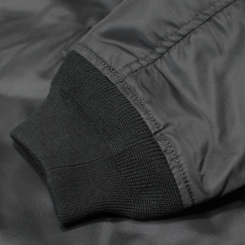 素材にはナイロン100%の耐水性ファブリックを採用し、軽さとタフさを兼ね備えています。MA-1よりもすっきりとしたシルエットで、デニムやカーゴパンツはもちろん、ストリートスタイルにも好相性。
