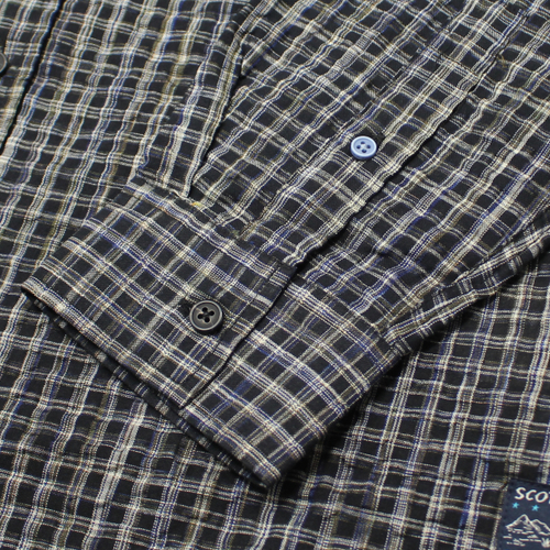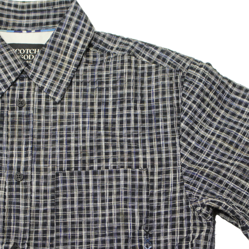 SCOTCH&SODA(スコッチアンドソーダ)シアサッカーマイクロチェックシャツが入荷しました!生地には、うねうねとした独特の凹凸が特徴のシアサッカー素材を採用。肌に触れる面積が少ないため通気性が良く、速乾性にも優れており、暖かい季節でも快適に着用できる一枚です。カラーはブラックをベースに、ホワイト・ベージュ・ブルーを織り交ぜた細かなチェック柄で、落ち着きの中にもさりげない表情があります。