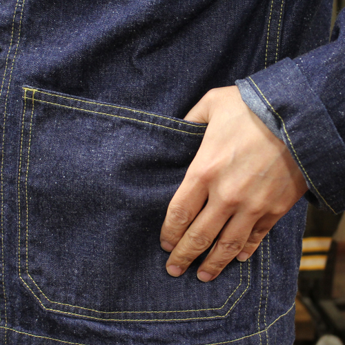 着込むほどに生地の風合いや色味が深まり、経年変化を楽しめるのもポイント。デニムジャケット感覚で軽く羽織れる一方、しっかりとした存在感も備えており、ワークスタイルからカジュアルな着こなしまで幅広く活躍するカバーオールです。