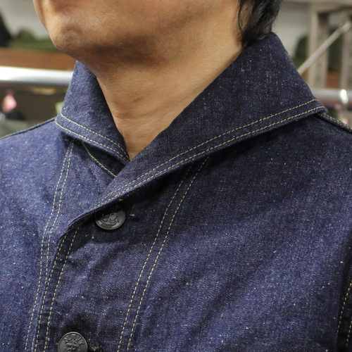 STRASSBURGER(ストラスバーガー)12oz JUMBO [SMALL LUMP] SELVEDGE US NAVY カバーオールのご紹介です!1940年代のU.S.NAVYカバーオールを忠実に再現しながら、素材や表情に現代的な解釈を加えた一着です。生地には12オンスのセルビッジネップデニムを採用し、軽快さと程よい存在感を両立。ショールカラー仕様に、バナナイエローのステッチを効かせることで、クラシックな中にもワークテイストを強く感じさせる仕上がりとなっています。