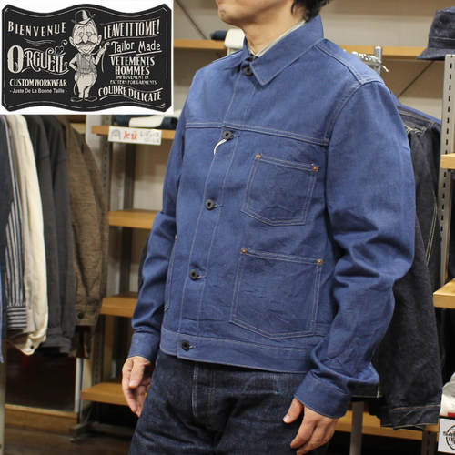 オルゲイユデニムワークジャケットのご紹介です。1950年代のワークデニムジャケットをベースにしながら、現代的で着やすいフィット感へとアップデートされた一着です。クラシックな雰囲気を残しつつも、野暮ったさを感じさせない絶妙なシルエットに仕上げられています。
