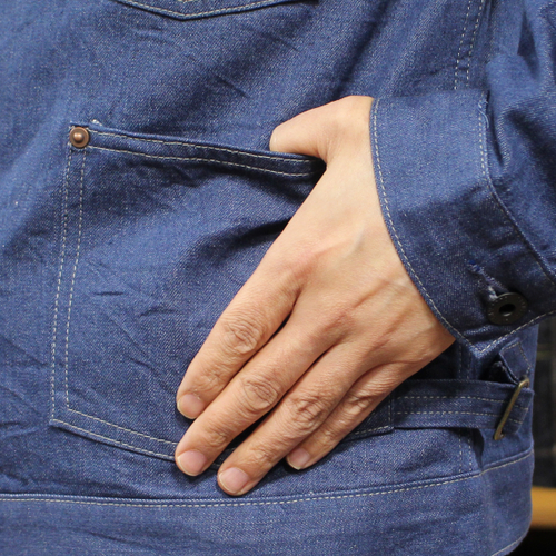 生地には軽量な11オンスのスラブデニムを使用。表情豊かなデニムは、淡いインディゴカラーで春らしい軽やかさも感じさせます。重すぎない生地感なので、春・秋はもちろん、インナー次第で冬場まで活躍してくれる3シーズン対応の万能アイテムです。