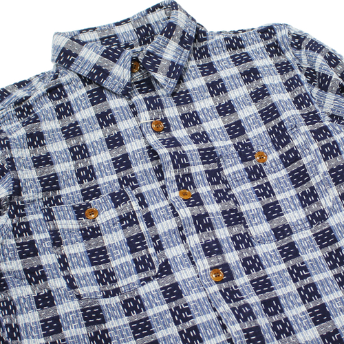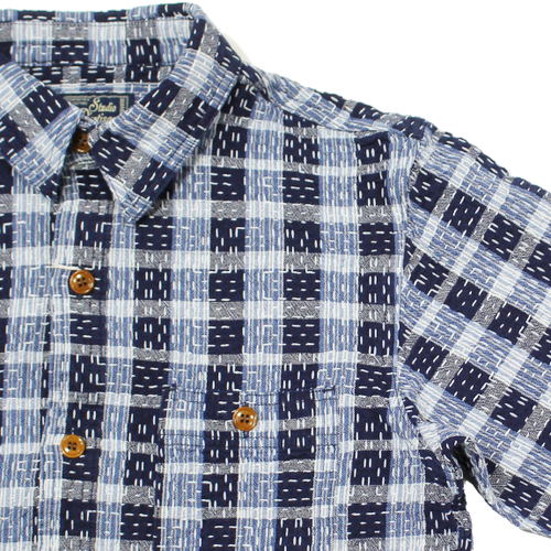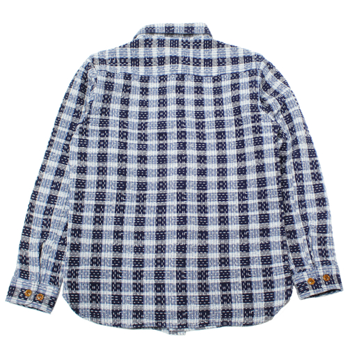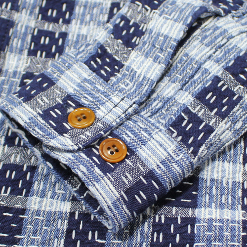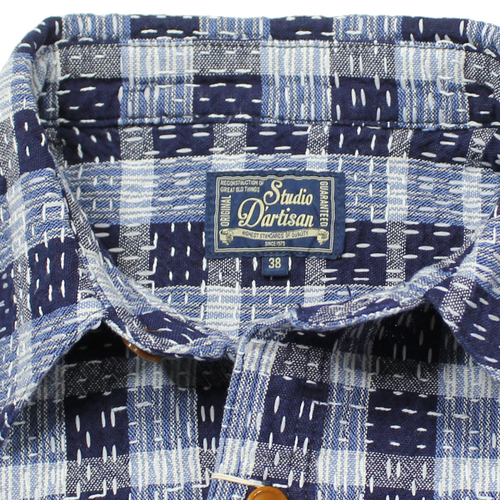 ステュディオダルチザンインディゴ野良着刺し子ワークシャツが入荷しました! ステュディオ・ダ・ルチザン(ダルチザン) 2026.03.23 ステュディオダルチザンインディゴ野良着刺し子ワークシャツが入荷しました!2色のインディゴスラブ糸を織り交ぜることで、長年着込まれた衣服のような柔らかく色あせた風合いを再現しています。縦横に走る不規則な刺し子ステッチが、手縫いのような温もりと素朴な表情を生み出しています。ボタンには天然素材のナットボタンを使用し、素朴ながら品があります。着込むほどにインディゴの経年変化も楽しめるシャツとなっています。 サイズ:38、40、42、44 価格:32780円(税込み)