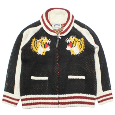 HOUSTON(ヒューストン)カウチンニットセーターが入荷しました!カラーはブラックです。スカジャンをモチーフにしたカウチンセーターシリーズはHOUSTONならではの解釈をもとに実現されたアイテムとなっています。背中には大きくトラがデザインされていて迫力があります!ざっくり目に編み込んだ肉厚のアクリル/ウールのカウチンになります。身幅は大きめとなっています。