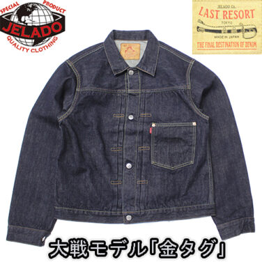 JELADO(ジェラード)S407XX 1942 WPB L-181 War Model(金タグ)デニムジャケットが入荷しました!JELADOオリジナルデニム、LASTRESORT DENIMは、「白タグ」「黒タグ」「茶タグ」「青タグ」「銀タグ」経て、最高峰の「金タグ」を使用した大戦モデルのGジャンになります。経糸は米綿100%のディープサウスを使用。緯糸には最高級超長綿のスヴィンゴールドスプリームを使用しています。デニムを織る織機は、TOYODA G3を使用しています。ポケットにはフラップを付けず、シンプルな1stモデルの仕様を踏襲しています。画像はMサイズで撮影しております。