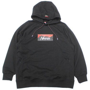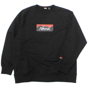 NANGA(ナンガ)ボックスロゴスエットが入荷しました!カラーはブラックです。NANGAのロゴが胸のところにブリントになっています。左袖口付近にもロゴがさりげなくデザインされていてお洒落です。両脇にはファスナー付きのポケットが付いていますので何かと便利です。生地に使用しているリサイクルコットンの「Ferre Yarn(フェレーヤーン)」を採用。滑らかな肌触りで柔らかい着心地となっています。内側は「裏毛(裏パイル)」になっており、1枚でもジャケットのインナーとしても使用できます。ゆったり目のシルエットとなっています。