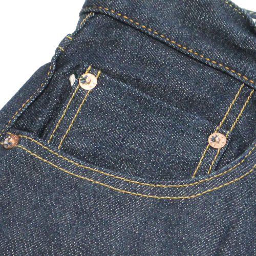 ![]() 厚さは14.5oz ストレッチタイプで穿きやすいモデルです。 |