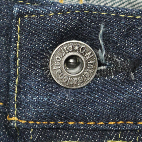 この製品のデニム生地は、「石川台」で6番手のストレートヤーンを紡績した糸を使用して1950年製のシャトル織機で製造致しました。