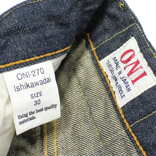 ●品名:鬼デニム15oz石川台デニム「270-Ishikawadai」 ●品番:ONI−270鬼Ishikawadai ●シルエット:レギュラーストレート ●色:ワンウォッシュ ●素材:綿 100% ●価格: 31900円(税込み) ●当店実寸:洗い加工+天日乾燥してありますので、縮みはありません。 (cm)