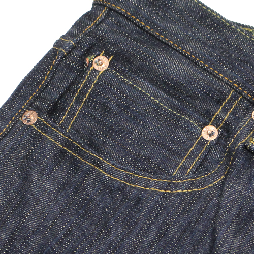![]() 厚さは一般のデニムの標準的な厚さとされる 16ozなので、穿きやすいモデルです。 |